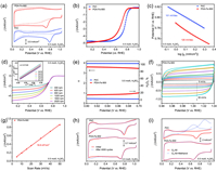| Fig. 4. ORR performances in 0.5 mol/L H2SO4: (a) CV curves, (b) LSV curves and (c) Tafel plots of PDA-Fe-900 and commercial Pt/C catalyst. (d) LSV curves of PDA-Fe-900 at different rotating speeds of 400~2025 rpm (inset showing the K-L plots at different potentials). (e) n and H2O2%. (f) CV curves of PDA-Fe-900 in 0.5 mol/L H2SO4 at different scan rates. (g) Cdl of PDA-Fe-900. (h) CV curves before and after 9000 potential cycles. (i) CV curves before and after addition of CH3OH solution for PDA-Fe-900 and commercial Pt/C. | |