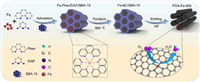 A ligand-assisted strategy was used to synthesize the catalysts. Typically, 0.27 g Phen and 0.16 g FeSO4·7H2O were dispersed in 25 mL mixed solution of ethanol and deionized water (v:v=1:1) under ultrasonication for 10 min, resulting in the formation of red Fe-Phen complex. Meanwhile, 1.5 g DAP and 0.5 g SBA-15 were dissolved in the above solution and stirred for 1 h at 25 ℃. Then, the brown power was obtained after drying and grinding in mortar. The precursor was heated to several different temperatures (700, 800, 900 and 1000 ℃) at a heating rate of 5 ℃/min. The temperature was maintained for 2 h under the condition of N2 flow (the heating platform was maintained at 300 ℃ for 1 h). The product was soaked in 20 wt% HF aqueous solution at 25 ℃ for 12 h. Finally, after being washed with deionized water until neutral and dried at 80 ℃ in the oven for 6 h, the ultimate product of PDA-Fe-T was obtained, where T stands for pyrolysis temperature (T = 700, 800, 900 or 1000 ℃). For comparison, the synthetic procedure of PDA-900, DA-Fe-900, PA-Fe-900 and PD-Fe-900 are similar to PDA-Fe-900 without adding Fe2SO4·7H2O, Phen, DAP and SBA-15, respectively.