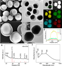 | Fig. 1. (a1, a2) SEM images, (b1, b2) TEM images and (c) TEM and HAADF images of AP-Ag@PANI and the corresponding EDS elemental mapping, (d) line scanning (marked in c), (e) XRD pattern and (f) UV–vis-NIR spectrum of AP-Ag@PANI. Scale bar: 200 nm. | |