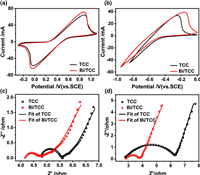 Electrochemical tests were conducted to detect reaction activity of Bi/TCC and TCC toward the Fe2+/Fe3+ and Cr3+/Cr2+ redox couples. The CV curves of Bi/TCC and TCC towards Fe2+/Fe3+ and Cr3+/Cr2+ redox couples are shown in Figs. 4a and b, respectively. From −0.3 V to 1.1 V (vs. SCE) voltage ranges, both Fe2+/Fe3+ redox couples in the samples had two distinct peaks in Fig. 4a. Compared with TCC, the oxidation/reduction peak current (ipa, ipc) on Bi/TCC were enhanced effectively. Meanwhile, the ratio of reduction and oxidation peak current densities (-ipa/ipc) of Bi/TCC and TCC were 1.072 and 1.049, respectively, which were close to 1 (Table S1 in Supporting information), indicating that both samples had great redox reversibility. Besides, the peak potential separation (▵E) increased with the introduction of Bi catalyst, indicating that Bi catalyst is not conductive to ameliorate the electrochemical activity of Fe2+/Fe3+ redox reaction. From Fig. 4b, there was only oxidation peak of Cr3+/Cr2+ redox couple for each sample, which demonstrated that both TCC and Bi/TCC have poor reversibility as negative electrodes. Table S1 (Supporting information) provides the relative value of peak current (I) and peak potential (E). Compared with TCC, Cr3+/Cr2+ had a superior oxidation peak current and a lower oxidation peak potential in Bi/TCC. It was indicated that Bi catalyst was beneficial to improve the reactivity of negative electrode by providing a significant number of extra active sites, which provide superior electrochemical performance, leading to an acceleration of the reaction speed [47].