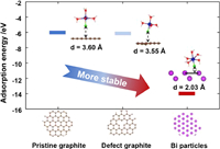 | Fig. 5. The stable configurations of [Cr(H2O)5Cl]2+ adsorbed on graphite surface, defect graphite, and Bi particles. The respective geometric structure and surface distance are shown in the inset figures. | |