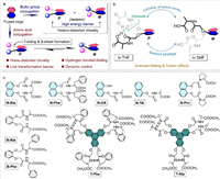 Molecular folding driven by intramolecular noncovalent forces such as hydrogen bonds or π-stacking would efficiently transfer point chirality from substituents to aromatics [17–20]. By this strategy, axial and propeller chirality of aromatics have been realized in hydrogen bonded folded structures [21,22]. However, the control over distorted homochirality using folding is unprecedented. It is envisioned that the bay substitution of amino acid derivatives would enable hydrogen bonded β-sheet folding, which may arouse plane distortion and achieve chirality transfer [23,24]. In this work, we reported a folding strategy to control the distorted aryl chirality and dynamic control over chirality was realized by switching solvents, which ascribed to the small energy barrier between enantiomeric conformations. This strategy produced enantiopure distorted polycyclic aromatic hydrocarbons without further HPLC separation, of which chirality was controlled by the amino acids. The π-conjugated core showed wide structural scope including benzene, naphthalene and triphenylbenzene (Scheme 1). Due to the weak nature of hydrogen bonds, the specific molecule showed solvent adaptivity that N-Ala-displayed a chirality inversion in tetrahydrofuran (THF) and N,N-dimethyl formamide (DMF).