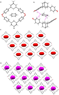 Although it can cause environmental pollution, benzene can serve as an important raw material to produce chemicals of more complex structures in chemical industry as well [20]. Cyclohexane (Cy), that is a feedstock for varnishes, resins and nylon fibers [21], is often produced by the hydrogenation of benzene. The difference of 0.6 K between the boiling points of PhH (353.25 K) and Cy (353.85 K) is almost negligible, and the azeotrope of PhH and Cy is easily formed. Because of these, the removal of unreacted PhH from the reactor’s effluent stream to afford pure Cy is referred to as one of the most challenging tasks in the petrochemical industries [22]. Currently, methodologies of physical adsorption of hydrocarbons using macrocycle-based nonporous adaptive crystals (NACs) have showed better performances over those of traditional extractive and azeotropic distillations [23-37]. Several groups including our group have separately reported the separation of PhH and Cy using different synthetic macrocycle-based nonporous adaptive crystals (NACs) [38-42]. However, all of these progresses focused on the separation of PhH and Cy. The similarities of structure and electrostatic potential characteristics between PhH and BTX result in the great difficulty of removing PhH with a low concentration from BTX. To the best of our knowledge, the selective and efficient capture of PhH from BTX by nonporous adaptive crystals were unexplored, although the Yoshizawa group [43] reported that a capsule structure can efficiently and selectively capture o-xylene over toluene, benzene, and cyclohexane. Given that separation of PhH from mixtures like BTX can provide benzene for the chemical industry and reduce the environmental pollution, a new material, that can efficiently separate PhH from mixtures such as BTX and that of PhH and Cy, is still challenging but greatly required.