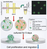 | Scheme1. The synthesis process of microgels and the illustration of cell behavioral differences regulated by the variable stiffness in microgels. | |