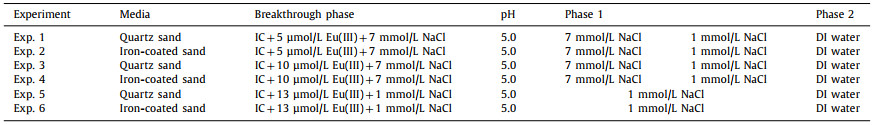 Table 1 Detailed setup of column release experiments in saturated porous media. |