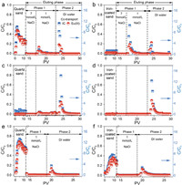 Transport and release experiments were performed in glass chromatography columns packed with quartz sand or iron-coated sand, respectively. The column was wet-packed with clean sand, a nylon membrane was placed at each end of the column to hold the sand and distribute water flow, the parameters of the packed column were listed in Table S1 (Supporting information). The influent was injected with the direction from bottom to top, and the effluent were collected by a fraction collector at set intervals in 10 mL polyethylene tubes. The release experiments were conducted by eluting with decreasing electrolytes concentration and followed by deionized water and the release experimental conditions were listed in Table 1. The Section S3 (Supporting information) shows the procedures of transport and release experiments.