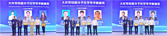 In addition, the symposium honored outstanding young scientists who have made significant contributions to the field of macrocyclic arene and supramolecular chemistry in 2018 through the Rising Star Award of Macrocylic Arene Supramolecular Chemistry. Congratulations to Junli Hou (Shanghai), Wei Jiang (Sehnzhen) (2018), Chunju Li (Tianjin), Ruibing Wang (Macau), and Liang Zhao (Beijing) (2019) for receiving Rising Star Award previously. In this symposium, Liping Cao (Xi'an), Xiaoyu Hu (Nanjing), Feng Wang (Hefei) (2020), Hao Li (Hangzhou), Qiqiang Wang (Beijing), Lin Xu (Shanghai) (2021), Huan Cong (Beijing), Xuzhou Yan (Shanghai), and Mingming Zhang (Xi'an) (2022) received Rising Star Award (Fig. 3). Liping Cao conducted in-depth research in the field of chiral adaptive responsive molecular hosts, including macrocycles, cages, and supramolecular organic frameworks. Xiaoyu Hu did excellent work in orthogonal supramolecular assemblies of macrocyclic hosts and their functionalization. Feng Wang provided supramolecular polymerization/copolymerization strategy to construct functional supramolecular assemblies. Hao Li focused on the precise control over the self-assembly of organic cages via intramolecular forces. Qiqiang Wang applied anion-recognition directed strategy to supramolecular catalysis. Lin Xu was dedicated to explore fluorescent coordination-driven supramolecular self-assemblies and their functionalization. Huan Cong made outstanding contributions to the design and synthesis of rigid macrocycles. Xuzhou Yan developed new synthetic strategy (supramolecular polymerization followed by interlocking) for building novel mechanically interlocked polymers (MIPs), and deep study of relationship between microscopic mechanical motion and macroscopic mechanical properties of MIPs. Mingming Zhang did remarkable work in emissive multicomponent metallacages and their applications in chemical and biological sensing, light-emitting, light-harvesting, photocatalysis and so on. The laureates delivered lectures and shared with attendees the progress they have made in recent years in this symposium.