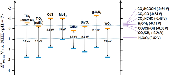 | Fig. 1. Band gap energy levels for general utilized photocatalysts. | |