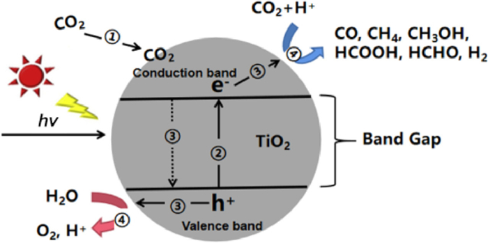 | Fig. 3. Fundamental of photocatalytic CO2 reduction on TiO2 semiconductor catalyst. | |