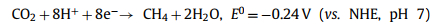 In the photoreduction of CO2, the semiconductor catalysts with appropriate band gaps need to be considered that the conduction band potential is more negative than the reduction potential of the reaction for CO2 reduction. As shown in the analysis results of Fig. 1 [10–12] the conduction band position of TiO2-based semiconductor is more negative than that of CO2 reduction to CH4, and the valence band position is more positive than that of H2O oxidation to O2. When the reduction potential and oxidation potential of the reaction are between conduction band (CB) and valence band (VB), the photogenerated electrons and holes can be used to the maximum extent [13].
