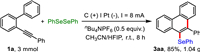 To verify the practicability of the developed protocol, a scale-up reaction was carried out by employing 2-alkynyl biaryl 1a (3 mmol) and diselenide 2a under the modified conditions. Pleasingly, a high isolated yield (85%, 1.04 g) comparable to that of the small-scale experiment was obtained (Scheme 3).