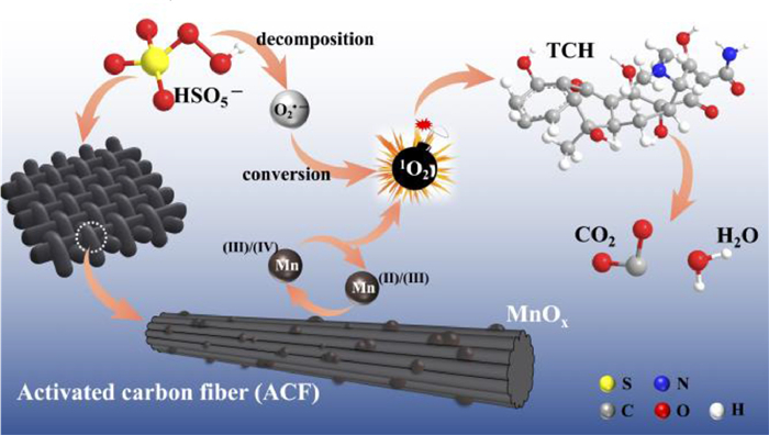 | Fig. 4. Schematic illustration of MnOx@ACF activates peroxymonosulfate for tetracycline hydrochloride (TCH) degradation. | |