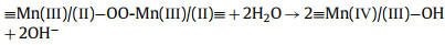 From this analysis, a possible mechanism of MnOx@ACF activation of PMS for TCH degradation was proposed. The detailed process of active species formation is summarized in the equations below and in Fig. 4. The enhanced activity of MnOx@ACF for PMS activation was attributed to the ideal coordinating sites for PMS, which were provided by the surface reactive Mn species of MnOx@ACF and the surface Mn(Ⅱ)/Mn(Ⅲ)/Mn(Ⅳ) cycle on the catalyst surface. PMS mainly exists in the form of HSO5− in solution [65] and provides negative charges. First, HSO5− dissociated from PMS could combine with surface reactive Mn species through OH−mediated interactions to form an inner-sphere complex (Eq. 2). After this, we noted the formation of O−O bridged species with the adjacent surface Mn(Ⅲ)/Mn(Ⅱ) under internal nucleophilic attack (Eq. 3), followed by the oxidative cleavage of O−O to produce two surface Mn(Ⅳ)/Mn(Ⅲ) species (Eq. 4). From this, we speculate that the formation of 1O2 may result from the reaction between ≡Mn(Ⅳ)/(Ⅲ)−OH and PMS. Analogous to Eqs. 2 and 3, the surface Mn(Ⅳ)/(Ⅲ) species provide sites for PMS to form an inner-sphere complex (≡Mn(Ⅳ)/(Ⅲ)−(O)OSO3−, Eq. 5). The complex can also trigger an internal nucleophilic attack to form an O−O bridge (Eq. 6). Electrons were subsequently transferred from the O−O bridge to the surface Mn(Ⅳ)/(Ⅲ) species, resulting in the release of 1O2 and regeneration of the surface Mn(Ⅲ)/Mn(Ⅱ) species (Eq. 7). Specifically, HSO5− might be directly adsorbed by amorphous MnO2 via ionization attraction and then generate SO4•− during the activation process (Eqs. 8 and 9) [66].