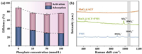 | Fig. 3. (a) Effect of NaClO4 concentration on the degradation of tetracycline hydrochloride (TCH) and (b) Raman spectra of MnOx@ACF, MnOx@ACF+PMS, and peroxymonosulfate (PMS). Initial conditions: [catalyst] = 0.1 g/L, [PMS] = 0.1 mmol/L, [TCH] = 20 mg/L and pH 5. | |