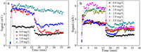 To analyze the influence of PA on properties of flocs formed in FC-PA and PFC-PA systems, PA with different dosages were selected as (0.0~2.0) mg/L for FC-PA system and (0.0~4.0) mg/L for PFC-PA system. The dosage of FC and PFC was 55 mg/L and 40 mg/L, respectively. The performance of flocs was monitored online by PDA 2000, and the flocs size expressed as ratio was plotted in computer. The signal of instrument measurement was used to characterize the size of the flocs and reflect the floc growth trend of the test process.