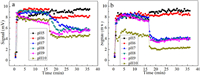 | Fig. 5. The breakage and regrowth curves of flocs for different pH of PA: (a) FC-PA as coagulant, (b) PFC-PA as coagulant. | |