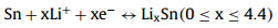 During the subsequent charge process, the peaks of LixSn reside till 0.4 V and disappear completely in high voltage range. LiF and Li2CO3 are observed in the end due to the incomplete reversibility, being consist with electrochemical curves [43]. The NMR results provided coincide with the mechanism reflected by the afore-mentioned CV analysis (Fig. 2a). In addition, 119Sn spectra (Fig. S7 in Supporting information) prove that the introduction of ZrO2 does not change the structure of SnO2. Furthermore, XRD measurements on the electrodes at different states of charge (Fig. S8 in Supporting information), the electrode exhibits Sn peak when discharged to 1 V and recovery of SnO2 diffraction peak upon charge to 3 V [44].