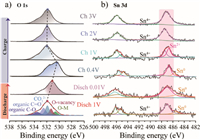 | Fig. 4. Ex-situ XPS of SnO2/C/ZrO2 electrode during the 1st de/lithiation process. Spectral evolution of (a) O 1s and (b) Sn 3d, the maximum of the peak marked within the violet rectangle are shown to the right. | |
