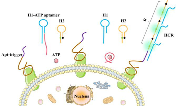 | Fig. 1. Schematic illustration of the extracellular ATP-activated hybridization chain reaction for cancer cell detection. | |