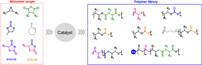 Plastics, with an annual global production of approximately 368 million tons, have demonstrated desirable properties and affected all aspects of our social society [1]. However, more than 80% of plastic products end up in the natural environment as waste that is difficult to degrade naturally, causing serious impacts on the ocean, ecological environment, and human health [1,2]. As an important class of environmentally friendly and degradable polymer materials, polymers containing easy-to-break carbon-oxygen bonds in the main chain, such as polyesters, poly(thio)esters, poly(thio)carbonates [3], have received extensive attention from academia and industry in recent years [4-9].