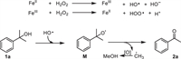Based on these observations, we propose the mechanism depicted in Scheme 6. The reaction is initiated by a hydroxyl radical generated from a Fenton process [60-62], followed by proton abstraction of tertiary aromatic alcohol to yield the corresponding alkoxyl radical M [63]. The alkoxyl radical M can subsequently undergo β-scission to form arylketone and methyl radical that can produce methanol observed by GC [64,65].
