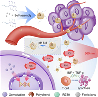 | Scheme 1. Schematic illustration about the design of the metal-phenolic network. The IR780 and gemcitabine were PEGylated to form metal phenolic network (MPN) to overcome their inherent defects. And the synergistic therapy enhanced photodynamic therapy by promoting cell apoptosis and facilitating T-cell mediated anti-tumor immune response. | |
