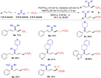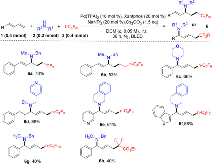After investigating the generality of 1,3-dienes and amines, the scope of fluoroalkyl iodides 3 was fully discussed (Scheme 3). Unfortunately, these products containing different fluoroiododecanes (6a–6h) showed poor inhibitory activity (MIC > 400 µmol/mL).