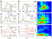 | Fig. 4. (a) Fe K-edge XANES analysis, (b) V K-edge XANES analysis, FT curves of (c) Fe K-edge and (d) V K-edge EXAFS k3 χ(k) functions obtained from the XANES spectra without fitting. (e, f) The fitting values of V K-edge EXAFS k3 χ(k) functions obtained from the XANES spectra, and (g) WT of V-foil, FeVO3-x and FeVO3-x precursor. | |