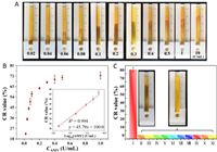 Commercial paper-based biosensors mostly rely on color as the readout signal [10]. The color change usually results from metal complexation, precipitate formation, or color dye's pH change. Generally, the measurement of color change requires professional devices such as cameras, scanners, or color analyzers for quantification, which might hinder the potential applicability of paper-based devices [11]. The distance-based signal readout is an appealing alternative for equipment-free naked-eye quantification of the analyte [12], because it only requires the measurement of length or diameter without the assistance of an external camera or scanner [13]. In the distance-based microfluidic assay, the alteration in distance is always correlated with the analyte concentration [14].