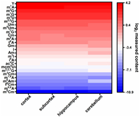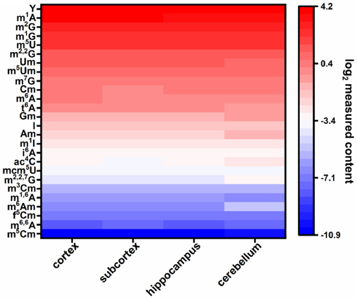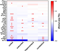 | Fig. 3. The relative levels of small RNA modifications among rat brain tissues (cortex, subcortex, hippocampus, and cerebellum) from control group. | |