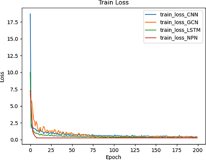 For NPN, GCN, CNN, and LSTM models, we use the rectified linear unit (ReLU) activation function in the hidden layer. We used the ADAM optimizer [24] with a learning rate of 0.0001 and a decay rate of 0.00001, and based on our experience and knowledge, we have selected different combinations of network hyper-parameters for model training and fine-tuning. We set the learning rate to [0.01 0.001 0.0001], the number of training rounds [100 200 300], the batch size [32 64 128], and the hidden layer nodes [100 200 300]. Then, we combined the values of different network hyper-parameters. The experimental results showed that when the learning rate was 0.0001, the batch size was 64, the hidden layer nodes were 200, and the number of training rounds was 200, the model performance was optimal. The proposed models have been implemented in the Pytorch library. As for the hardware system configuration, the processor is an Intel (R) Xeon (R) Silver 4110 CPU@2.10 GHz, the RAM has a capacity of 32.0 GB, and the graphics card is an NVIDIA RTX 2080 Ti [25]. We randomly divided the dataset into a training dataset and a test dataset in the ratio of 8:2.
