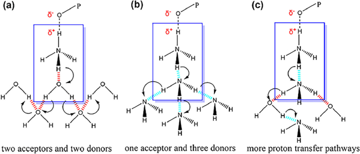 | Scheme 2. Proposed proton transfer pathways of MDAF-6-NH3 in (a) water, (b) NH3 and (c) NH3-H2O atmosphere. | |