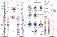 | Fig. 4. Total and partial density of states (DOSs) and orbital energy levels of (a) Cu4(dppy)4Cl2 based on the single-crystal structure and DFT-optimized S0 minima, and (b) Cu21(dppy)10 based on the single crystal structure. Each orbital is drawn with colour labels to indicate the relative contributions of the atomic orbitals. The isosurface value of molecular orbitals is ±0.03 au H atoms are omitted for clarity. | |