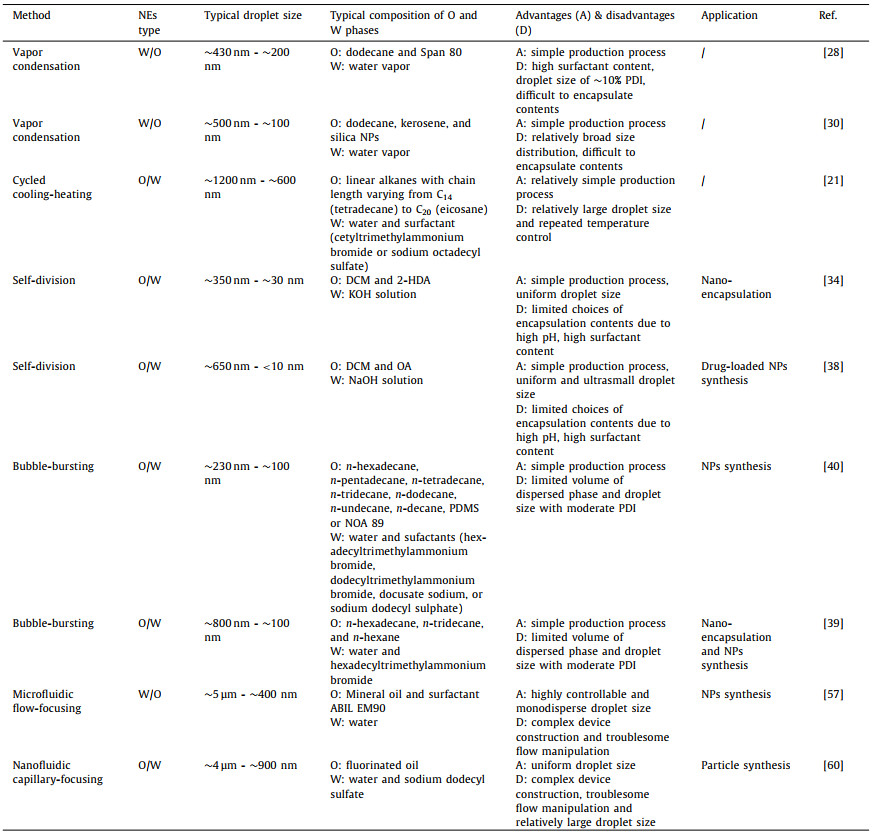 Table 1 Summary of typical low-energy nanoemulsification methods. |