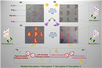 On the other hand, combination of photochromism and light-regulated CPL properties, the complexes show the potential combination of photochromism and light-regulated CPL properties, the complexes show the potential application in anti-counterfeiting. Herein, we prepared the letters "C", "P" and "L" films with the Eu3+ and Gd3+ complexes, Eu2(LR)3(BTFPO)2]n, [Eu2(LS)3(BTFPO)2]n, racemic [Eu2(LR/S)3(BTFPO)2]n and [Gd2(LR)3(BTFPO)2]n as dopants. With these letters, we designed a simple matrix to discuss the possibility of the hybrid film for advanced anti-counterfeiting (Fig. 5a). In this matrix, the encrypted information can be decrypted in UV, PL and CPL modes. Further, the complete decryption need simultaneously satisfy the following three decryption conditions: (1) All the letters in matrix turn to purple under UV 275 nm irradiation, which can be determined by naked eyes or UV detector (Fig. 5b); (2) under 375 nm excitation light, the colourless letters (open-ring state) in cross line emit the bright red light, while the four letters in corner are not luminescent; meanwhile the letters "C" with left circularly polarized emission and "L" with right circularly polarized emission can be distinguished by left- or right-polarizing filters (Fig. 5c); (3) in the photostationary state, the letters on corner are purple and non-luminescent, but the enhanced CPL emission from letters "C" and "L" will be more easily distinguished by the polarizing filters (Fig. 5d). Compared with the conventional fluorescence anti-counterfeiting, such a matrix with the integration of UV, PL and CPL is endowed with multiple security features. This experiment demonstrates that the materials are suitable to realize the high-end anti-counterfeiting or information encryption.