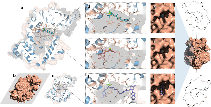 | Fig. 2. Molecular docking guided the construction of ABTP-DPTB. (a, c) Cross-sectional view of APN binding with different ligands. (b) The position of the cross-section. (d–f) Different binding modes of bestatin (cyan), DPTB (wheat) and ABTP-DPTB (purple) to the active site of APN. (g–i) The outside view of corresponding ligands in pipe D4. (j) The surface map and open-book view of pipe D4 in APN. | |