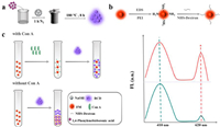 Despite the use of FMs as signal unit, however, the above-mentioned sensing strategy with turn on or turn off variations in the fluorescence intensity is easy to be affected by many factors, including instrument fluctuation, microenvironment perturbation and distribution variation of fluorescent material, leading to the possibility of false-positive error. Thereby, the ratiometric sensing concept that is capable of providing built-in self-calibration for minimizing false-positive error should be taken into consideration [22]. In general, a ratiometric fluorescence sensor usually covers two signals at two or more different wavelengths. To realize this goal, another fluorescent material is required to serve as internal reference except for FMs. Recently, carbon dots (CDs) [23-26] have flourished in the field of fluorescence biosensor due to the splendid luminescence property, good biocompatibility, and easy availability. The abundant CDs species can allow tremendous flexibility to choose one that has the same excitation wavelength with FMs but distinct fluorescence emission peak for simplifying the analysis process. More importantly, CDs possess abundant surface functional groups, which offer the likelihood to interact with sugar-labeled FMs and build relationship with the Con A.