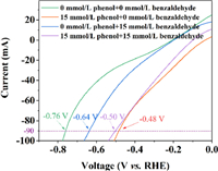 | Fig. 5. Linear scanning voltammetry curves of Pt/SSB catalyst with different concentrations of phenol and benzaldehyde at a scanning rate of 10 mV/s. | |