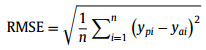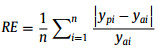 Above, ypi and yai represent the predicted and the actual values of the NO removal rate, respectively.
