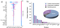 Grouping the features into a few categories, we found that "catalyst characteristics" is the most important category for NO removal, which accounted for 60.48% of the total importance. The sub-important strategies were "reaction process" and "preparation conditions", respectively (Fig. 4b). Thus, the combination of SHAP value and feature importance indicated that the priority of g-C3N4-based catalysts to achieve efficient NO removal may be: catalyst characteristics > reaction process > preparation conditions.
