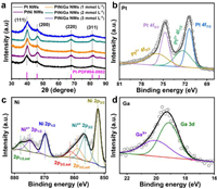 | Fig. 2. (a) XRD patterns of Pt NWs/C, PtNi NWs/C and PtNiGa NWs/C. XPS spectra of (b) Pt 4f, (c) Ni 2p and (d) Ga 3d of PtNiGa NWs/C. | |