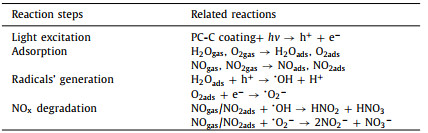 Table 1 Photocatalytic reaction steps of NOx over PC-C coating. |