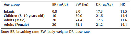 Table 2 Somatic parameters and estimated HR of NO2 for infants, children (8–10 years old), male adults and female adults. |