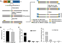 We previously studied the effects of 1mdA on DNA transcription using a shuttle vector- and next-generation sequencing (NGS)-based assay and revealed that 1mdA can strongly inhibit transcription and induce many types of mutations [20]. Moreover, such cellular transcription assays can be used for measuring the effects of DNA repair proteins on lesion-induced transcriptional alterations, providing important information about how the DNA adduct is repaired in cells [20,26-28]. To further explore the potential roles of STRAP in the repair of 1mdA-carrying DNA in human cells, we quantitatively assessed the effects of STRAP on the transcription efficiency and fidelity of 1mdA-bearing DNA using shuttle vector- and NGS-based assay. In this vein, we constructed nonreplicating 1mdA-bearing plasmids by using the gapped vector strategy [28,29]. Equal amounts of 1mdA-containing and undamaged control plasmids were mixed and transfected into STRAP knockdown or wild-type HEK293T cells for cellular transcription. The resulting transcripts was extracted and digested with DNase I to remove DNA contamination. The transcription products of interest were then amplified by RT-PCR with primers containing different barcodes, and combined for NGS library construction and sequencing analysis (Fig. 4A).