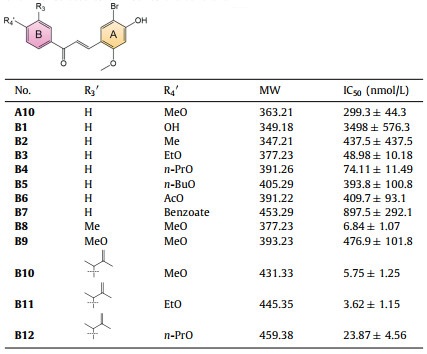 Table 2 Chemical structures of B-series chalcone analogues and their anti-Notum activity. |