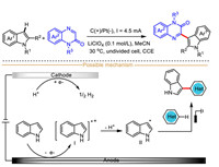 | Scheme 6. Electrocatalytic indole-derived radical cation-mediated C–H arylation of indoles with quinoxalin-2(1H)-ones. | |