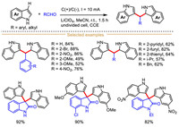 | Scheme 8. LaCl3-promoted electrochemical bisindolylation of ethers. | |