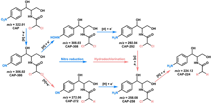 | Fig. 8. Reaction pathway diagram for EDH of CAP on Fe@MLC. | |