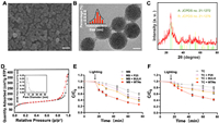 | Fig. 1. Characterization of MTNs. (A) SEM image (scale bar, 100 nm) and (B) TEM image (scale bar, 20 nm) of the mesoporous titanium nanoparticles. (C) XRD patterns of the mesoporous titanium nanoparticles compared with the standard rutile (R) and anatase (A). (D) Nitrogen adsorption-desorption isotherms and pore-size distribution (inset) of the mesoporous titanium nanoparticles. Photocatalytic efficiency for the degradation of (E) methylene blue and (F) tetracycline. Results are shown as mean ± standard deviation (SD) (n = 3). | |