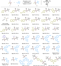 | Scheme 2. Substrate scope. Reaction conditions: 1 (0.24 mmol), 2 (0.2 mmol), [Rh(cod)Cl]2 (1 mol%), L6 (2.2 mol%) in 2.0 mL toluene under argon atmosphere at room temperature for 12 h, isolated yields. a Reacted for 36 h; b 1 (0.1 mmol), 2 (0.2 mmol), [Rh(cod)Cl]2 (2 mol%), L6 (4.4 mol%) in 2.0 mL toluene under argon atmosphere at room temperature for 12 h, isolated yields. X-ray crystallographic analysis of 3ha allowed us to determine the absolute configuration, and configurations of the product 3 were assigned by analogy. | |